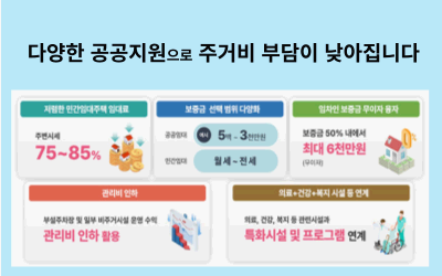 - 공공 임대주택은:저소득층 어르신의 주거 안정을 위해 주변시세의 30%~50% 수준으로 공급하며,